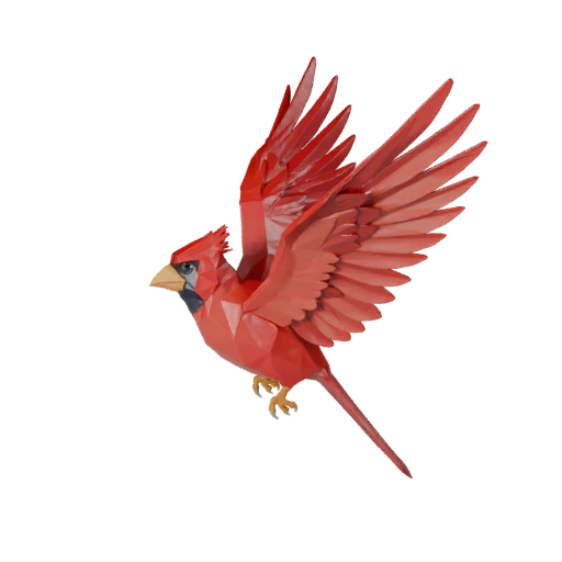 Низкополигональный ассет кардинала с акцентом на детализацию веера хвоста, низкополигональность, pbr перья и подготовку к риггингу в реальном времени для Unity.