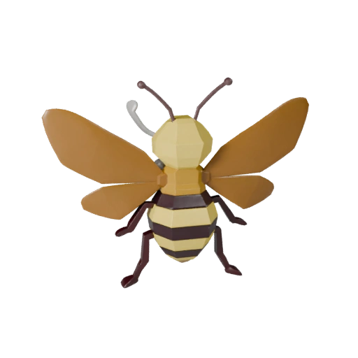 Низкополигональный ассет пчелы медоносной с акцентом на размещение усиков, низкополигональность, стилизованный экзоскелет и подготовку к риггингу в реальном времени для Unity.