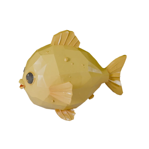Низкополигональный ассет рыбы-фугу с акцентом на мембраны плавников, низкополигональную модель, pbr шкалы и подготовку к риггингу в реальном времени для Unity.