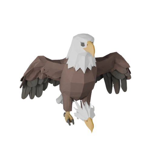Низкополигональный ассет белоголового орлана с акцентом на распушение хвоста, низкополигональность, pbr перья и подготовку к риггингу в реальном времени для Unity.