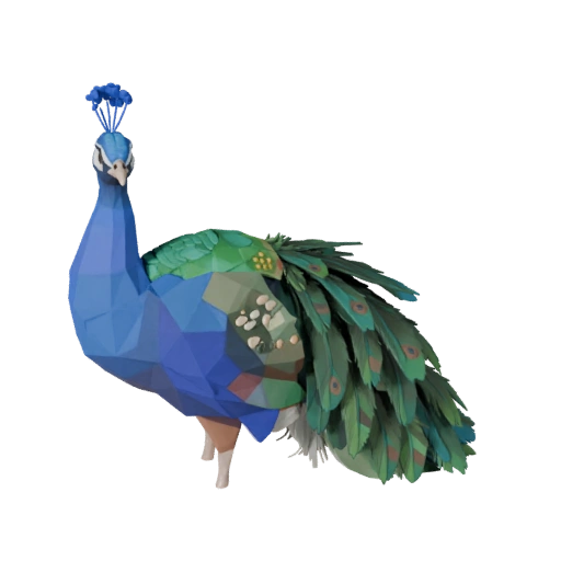 Низкополигональный ассет павлина с акцентом на направление перьев, низкополигональный, pbr перья и подготовка к риггингу в реальном времени для Unity.