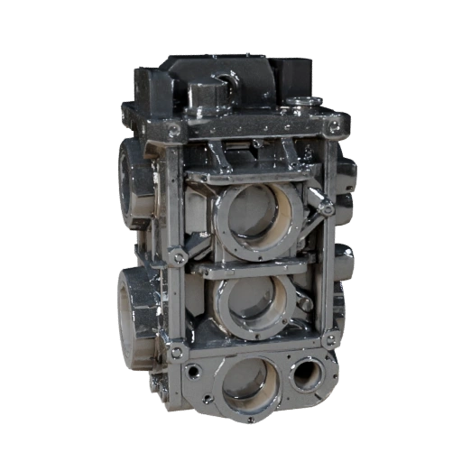 Низкополигональная 3D модель блока двигателя для разработки игр с низкополигональной геометрией и PBR материалами для твердых поверхностей с четким определением краев, разделением металлов и читаемостью компонентов крупным планом.