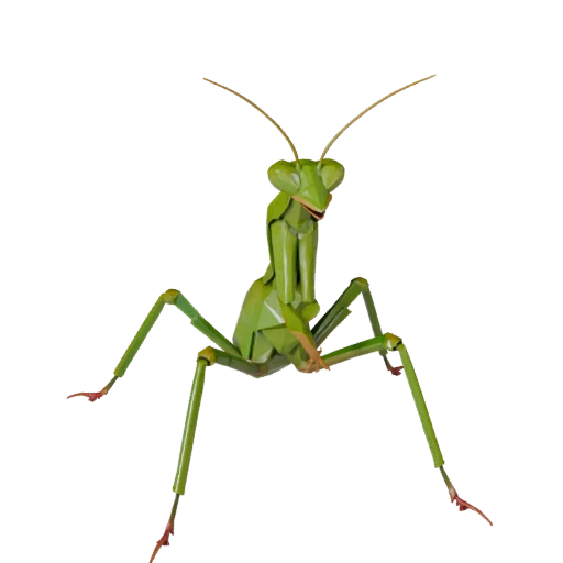 Низкополигональный ассет богомола с акцентом на размещение усиков, низкополигональный стиль, стилизованный экзоскелет и подготовку к риггингу в реальном времени для Unity.