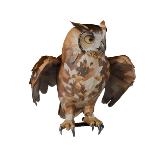 Низкополигональный ассет филина с акцентом на направление перьев, низкополигональность, pbr перья и подготовку к риггингу в реальном времени для Unity.