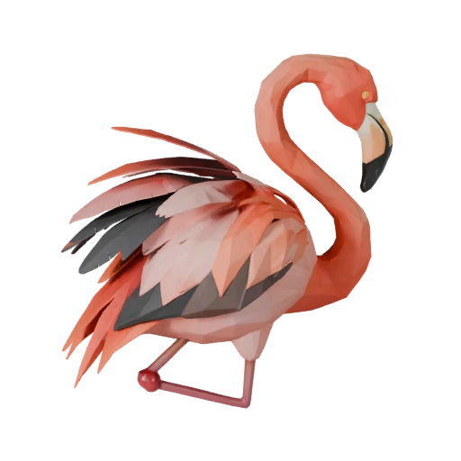 Низкополигональный ассет фламинго с акцентом на профиль клюва, низкополигональность, pbr перья и подготовку к риггингу в реальном времени для Unity.