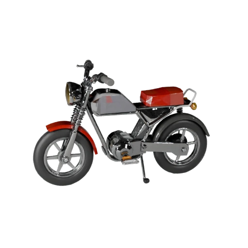 Низкополигональная 3D модель ретро-скутера для разработки игр с низкополигональной геометрией и PBR краской для металла, стекла, резины и внутренней отделки с четким разделением материалов.