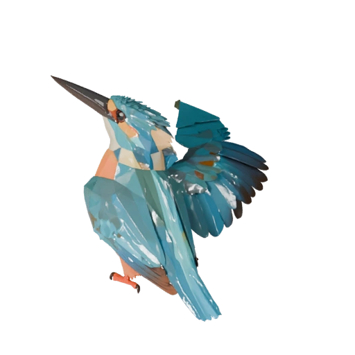 Низкополигональный ассет зимородка с акцентом на направление перьев, низкополигональность, pbr перья и подготовку к риггингу в реальном времени для Unity.