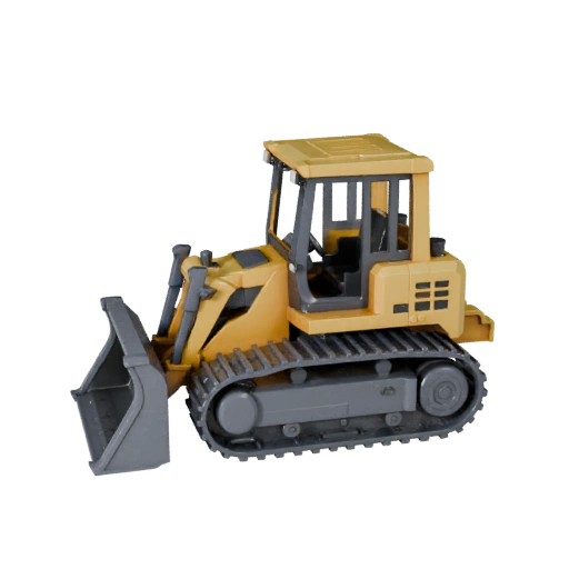 Печатная 3D модель бульдозера для 3D печати с высокополигональной геометрией и поверхностями с детализацией скульптуры, оптимизированными для печати, четким разделением форм и читаемостью поверхностей для дисплея.