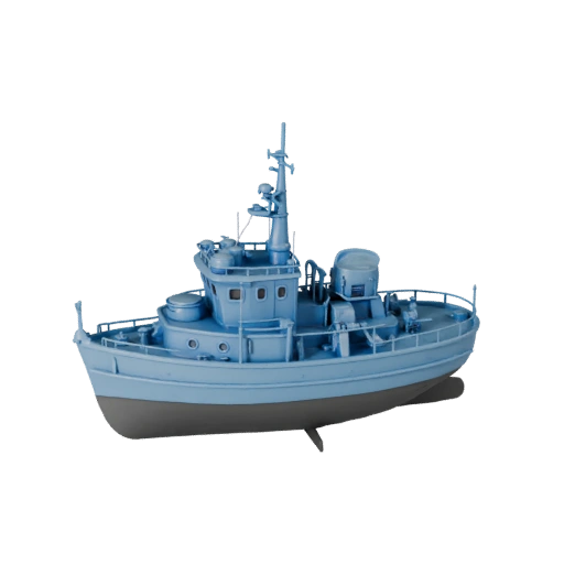 Печатный винтажный патрульный катер с хорошей читаемостью формы и детализацией скульптуры, ориентированной на дисплей.