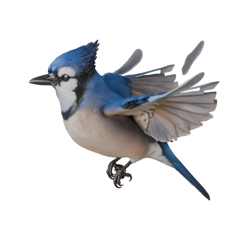 Реалистичный ассет голубой сойки с акцентом на направление перьев, средний поли, pbr перья и подготовку конвейера анимации для Blender.