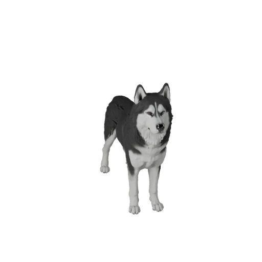 Реалистичный ассет сибирского хаски, ориентированный на направление шерсти, средний поли, PBR мех и подготовку к анимационному пайплайну для Blender.