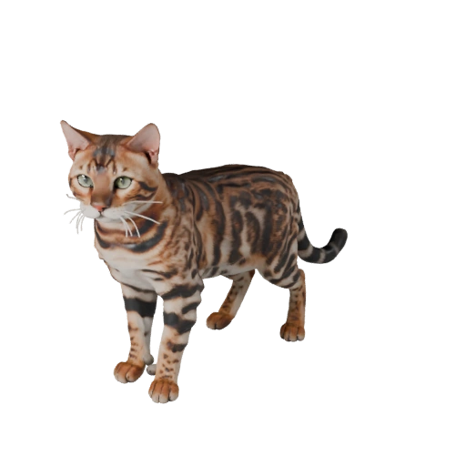 Реалистичный ассет бенгальской кошки с акцентом на кошачий поток позвоночника, Mid Poly, PBR мех и подготовку к анимации для Blender.