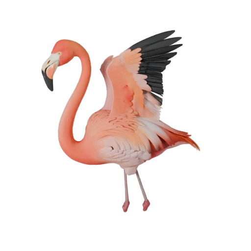 Реалистичный ассет фламинго с акцентом на детализацию веера хвоста, средний поли, pbr перья и подготовку к анимации для Blender.