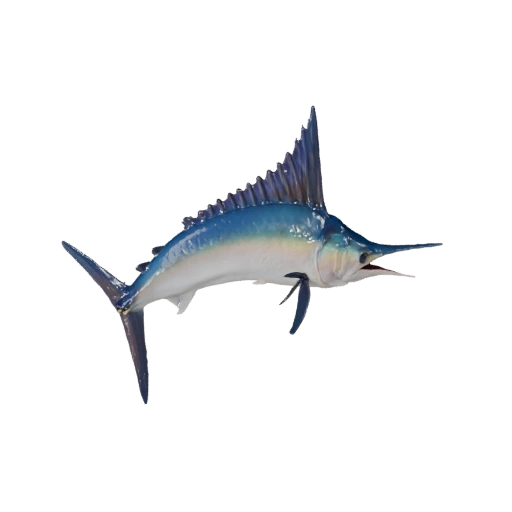 Реалистичный ассет марлина с акцентом на мембраны плавников, средний поли, pbr шкалы и подготовку анимационного пайплайна для Blender.