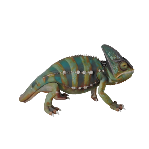 Реалистичный ассет хамелеона с акцентом на детализацию чешуи, средний поли, pbr шкалы и подготовку к анимации для Blender.