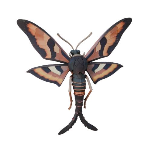 Реалистичный ассет лунного мотылька с акцентом на разделение грудной клетки, средний поли, стилизованный экзоскелет и подготовку к анимационному пайплайну для Blender.