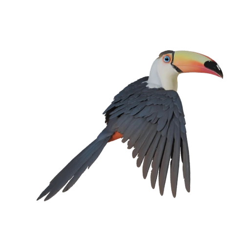Реалистичный ассет тукана с акцентом на раскрытие хвоста, средний поли, pbr перья и подготовку к анимации для Blender.