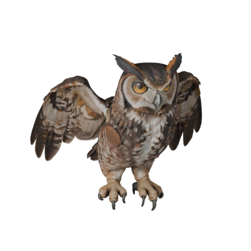 Реалистичный ассет филина с акцентом на профиль клюва, средний поли, pbr перья и подготовку конвейера анимации для Blender.