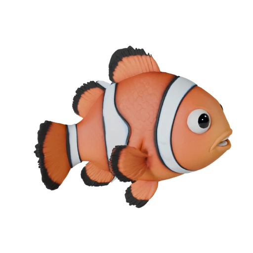 Ресурс рыба-клоун для Blender с акцентом на детализацию поверхности, средний поли, pbr шкалы и подготовку конвейера анимации для Blender.