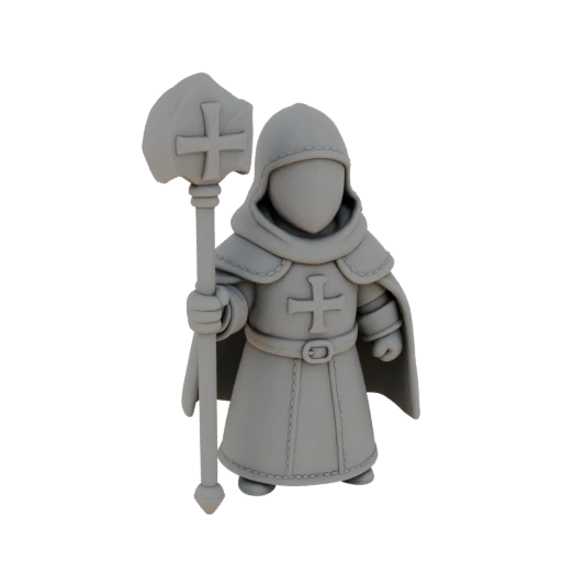Средневековый миниатюра клирика STL - Страж разработан для DnD и настольных игр. Этот концепт для печати использует читаемый силуэт, скульптурную детализацию и композицию, готовую к встрече, для печати смолой и коллекционной росписи