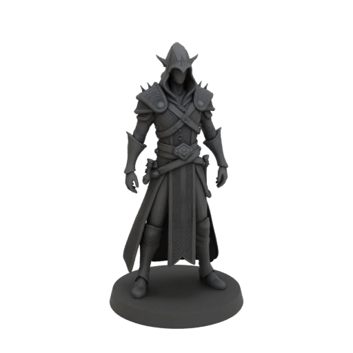 Средневековый темный эльф убийца миниатюра STL разработана для DnD и настольных игр. Эта концепция для печати использует читаемый силуэт, скульптурную детализацию и композицию, готовую к встрече, для печати смолой и коллекционной росписи