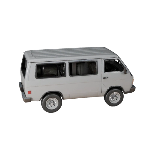 Готовая к использованию в Unity 3D модель винтажного фургона для разработки игр с низкополигональной геометрией и PBR краской для металла, стекла, резины и внутренней отделки с чистым разделением материалов.