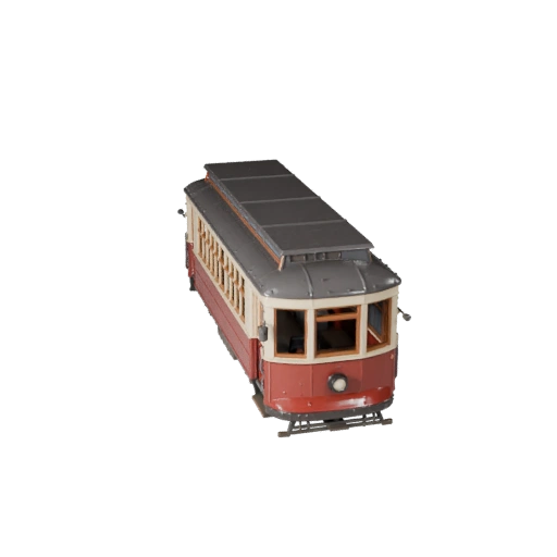Винтажный трамвай реалистичная 3D модель для кино / анимации / VFX со средней полигональностью и окрашенным металлом PBR, окнами, сталью ходовой части и зонами материалов, готовыми к интерьеру.