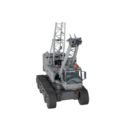 Высокополигональная модель мобильного крана, подготовленная для рендеров крупным планом и отполированной студийной презентации.
