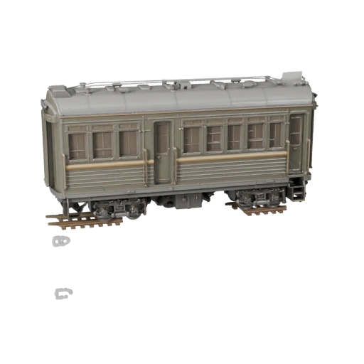Высокополигональная модель винтажного пассажирского поезда, подготовленная для рендеров крупным планом и отполированной студийной презентации.