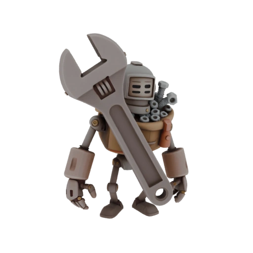 Маленький, юркий робот-механик, собранный из грубых металлических деталей. Вместо рук у него большие манипуляторы. За...